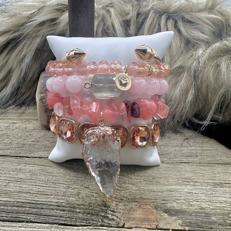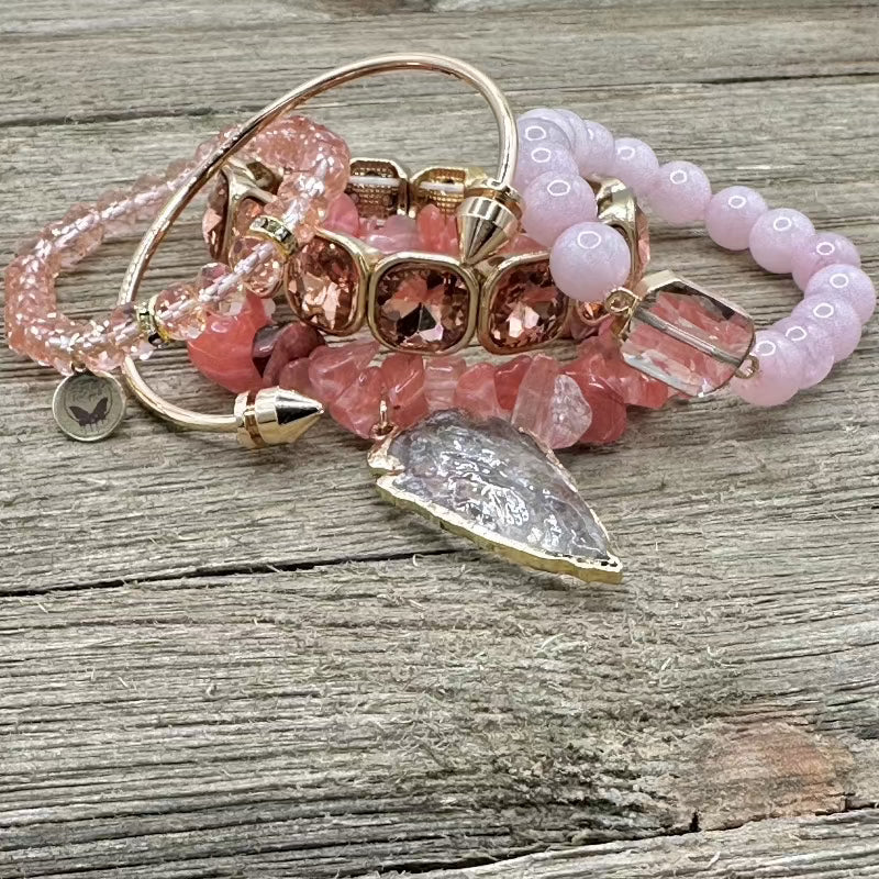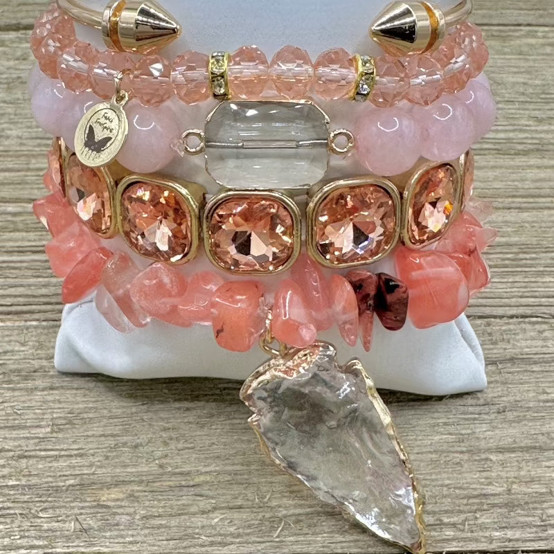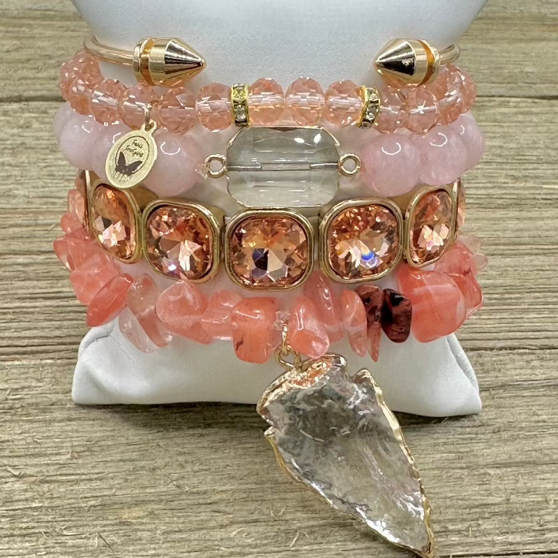 Get ready to slay the style game with 'Blush Brilliance' Bracelet Stack – a bombshell of sass dipped in pink and coral perfection! These bracelets aren't just accessories; they're your VIP pass to a world where bold meets beautiful, and confidence is your ultimate accessory.