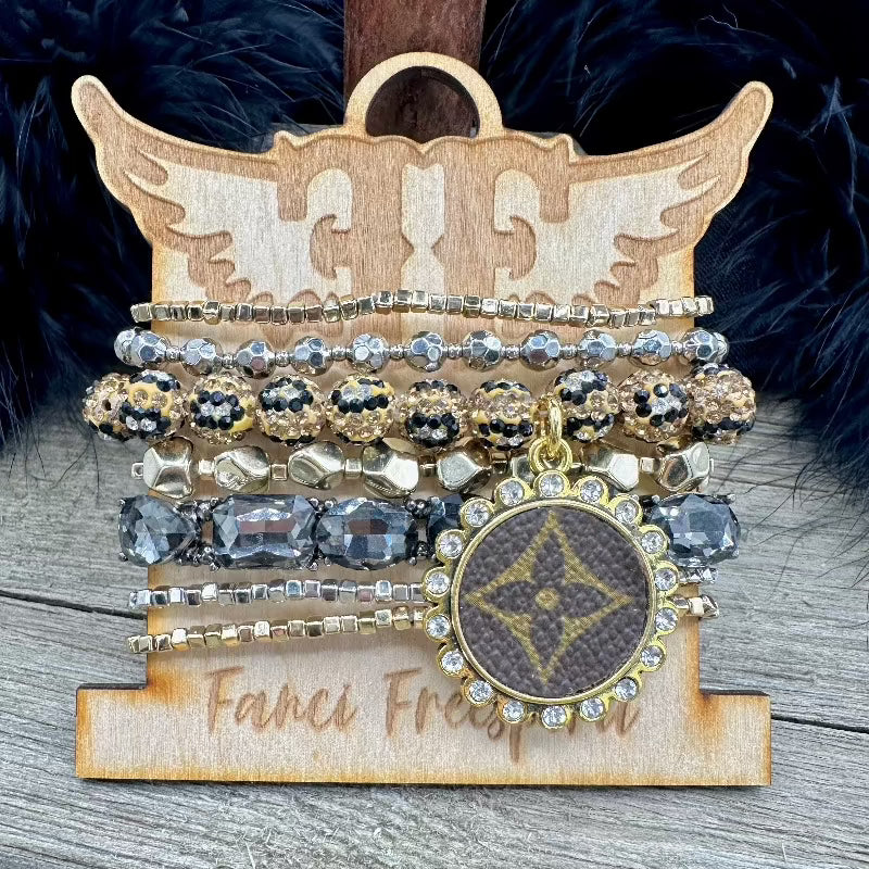 The 'Glamin Out' stack is your passport to unapologetic extravagance, a fusion of edgy glam and chic refinement. Each bracelet tells a story of empowerment, letting you unleash your inner trendsetter with every shimmer and sparkle. Whether you're conquering the concrete jungle or ruling the runway, 'Glamin Out' ensures you do it with panache.