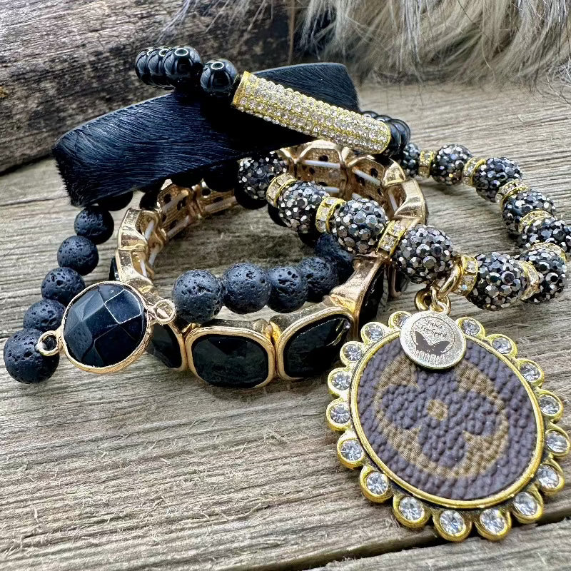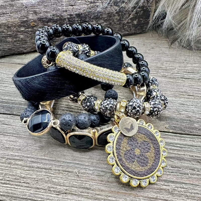 This bracelet stack is a stunner. Stack them all up and wear on wrist or wear 3 on one side and 2 on the other with your favorite watch!