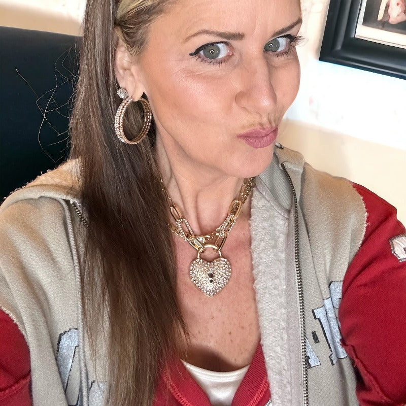 Big Heart Crystal Locket Necklace and heart stud earring set – it's not just jewelry; it's an attitude. This bold set is all about your big heart, featuring a stunning heart-shaped locket with dazzling crystals. It's a statement piece that lets you express your style in a way that's as unique and fearless as you are. Elevate your look and show the world your edge with this captivating set.