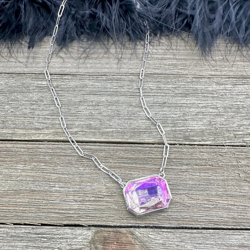 Unleash edgy boho chic with our Pink Crystal Paperclip Chain Necklace. Perfect for layering with your favorite necklaces, it adds a daring touch to your unique style. Make a statement, break boundaries, and elevate your look with this captivating piece that's as individual as you are. Wear it solo or as a layering piece with your silver toned chains to make it a bold look!